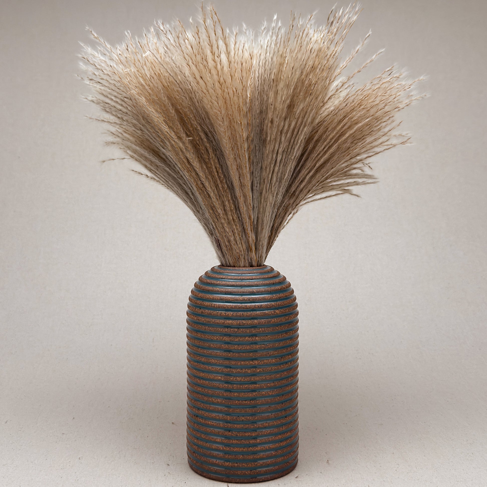 Inside, the vase is fully glazed on the inside and will hold water for flowers. It is great for a bedside table, desk, or an entryway table. I love this vase for billy balls, bunny tails, or silver dollar eucalyptus greenery.