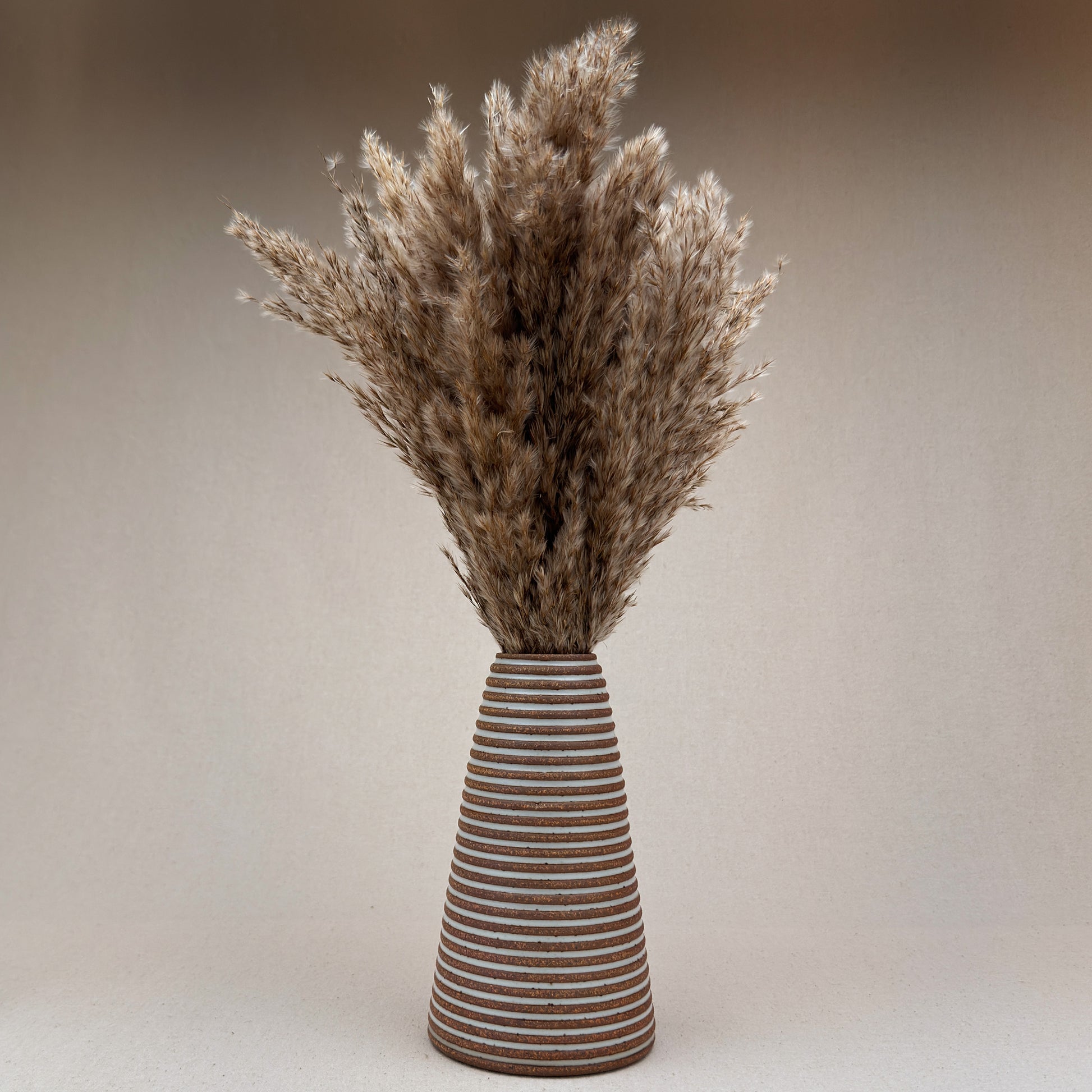 Inside, the vase is fully glazed on the inside and will hold water for flowers. It is great for a bedside table, desk, or an entryway table. I love this vase for billy balls, bunny tails, or silver dollar eucalyptus greenery.