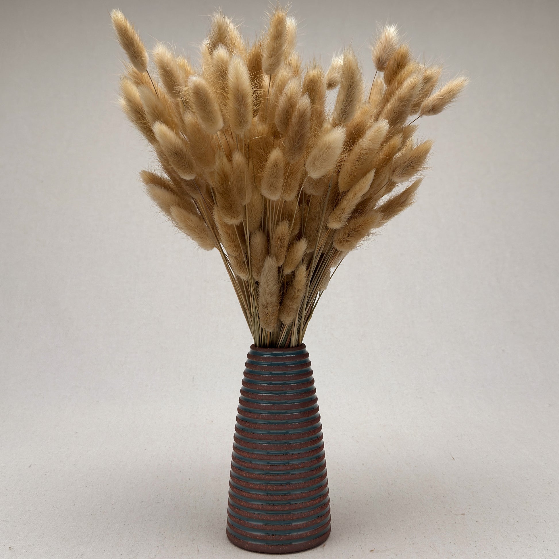 Inside, the vase is fully glazed on the inside and will hold water for flowers. It is great for a bedside table, desk, or an entryway table. I love this vase for billy balls, bunny tails, or silver dollar eucalyptus greenery.
