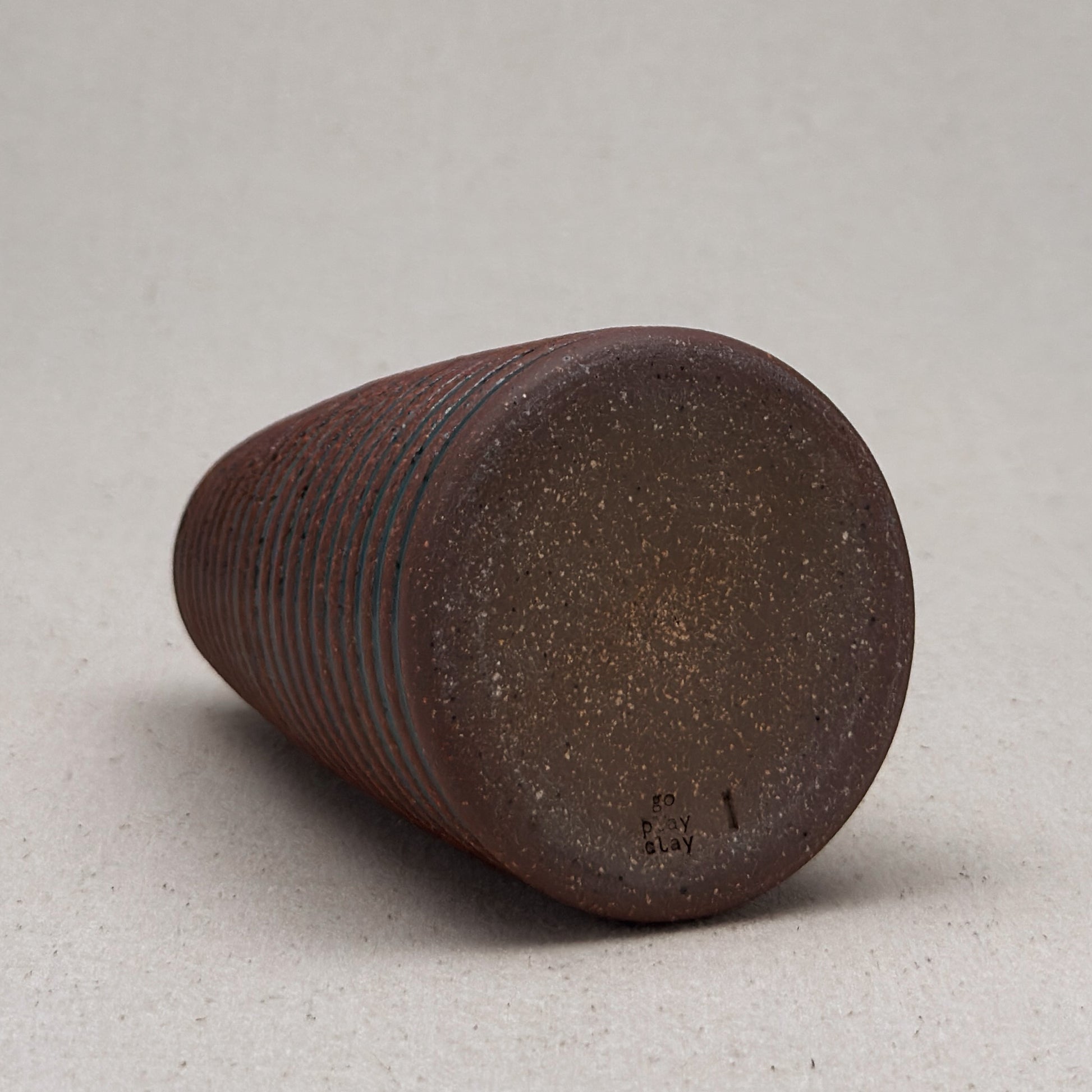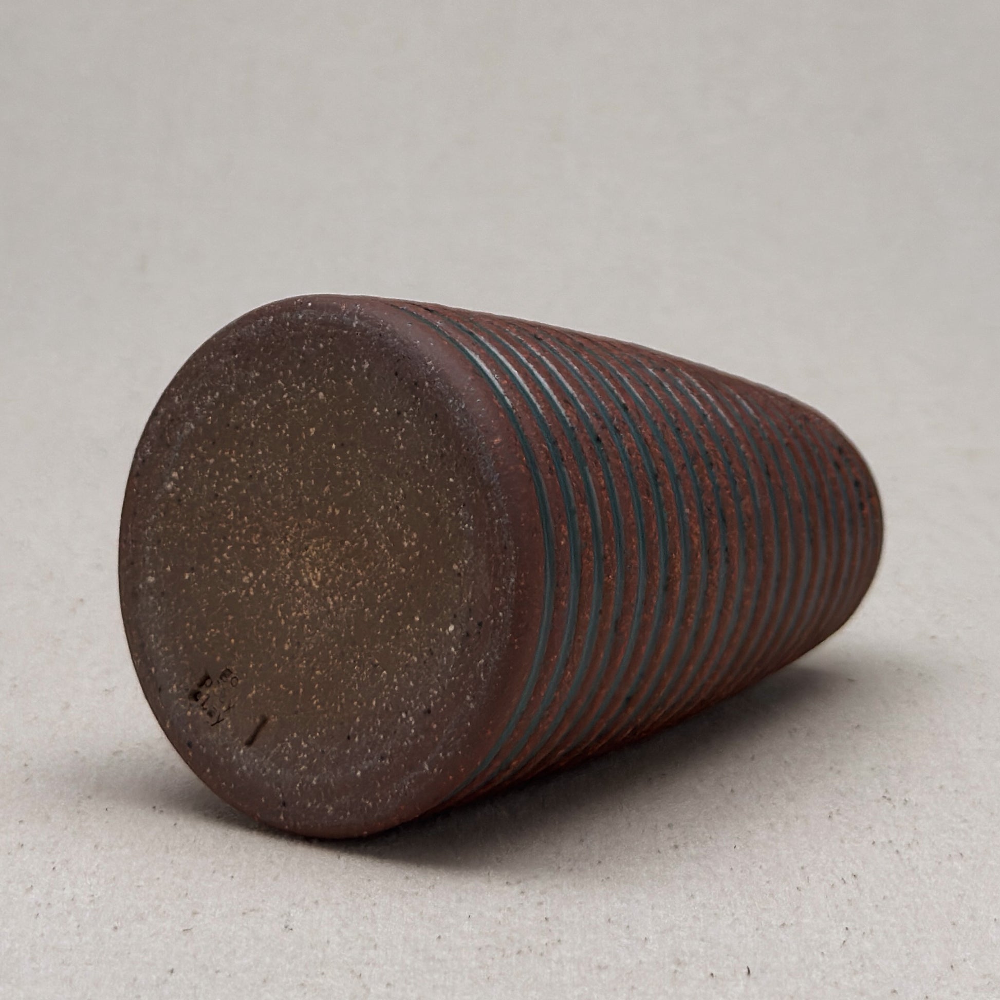 This vase is part of a small batch series. The letter “l” stamped on the base means that it was the twelfth one of its shape. Sometimes, I make it through the alphabet in a batch, but I usually move on to a new kind of pot and restart the alphabet.