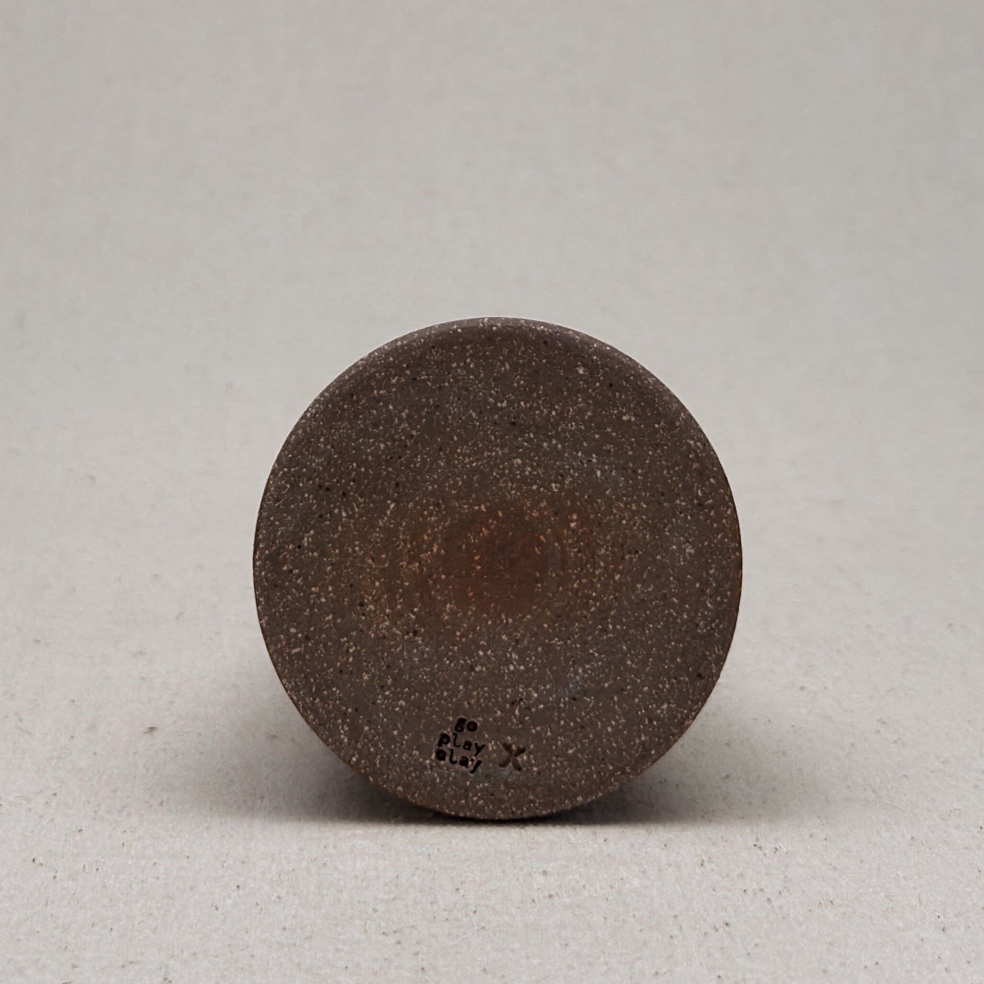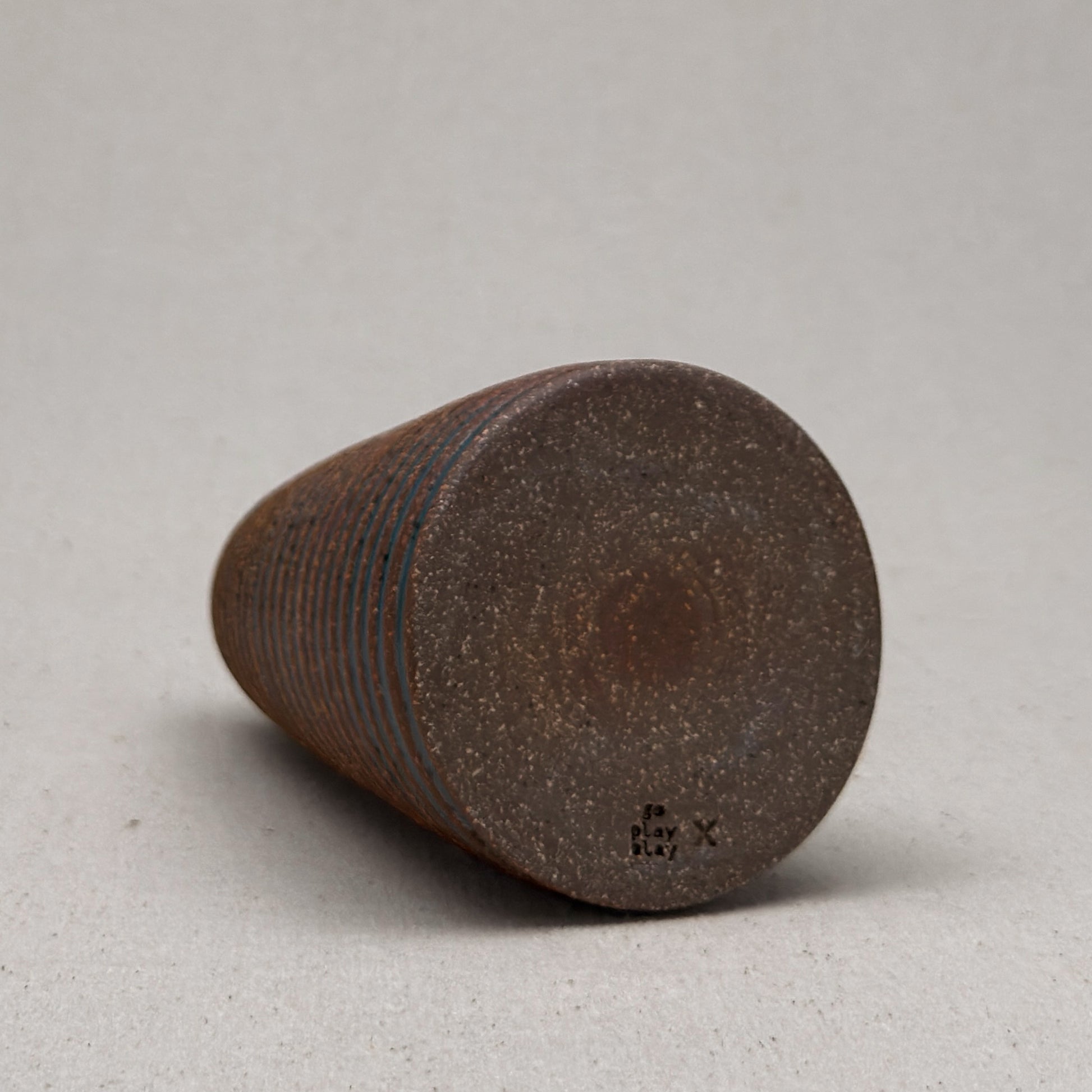 This vase is part of a small batch series. The letter “x” stamped on the base means that it was the twenty-fourth one of its shape. Sometimes, I make it through the alphabet in a batch, but I usually move on to a new kind of pot and restart the alphabet.