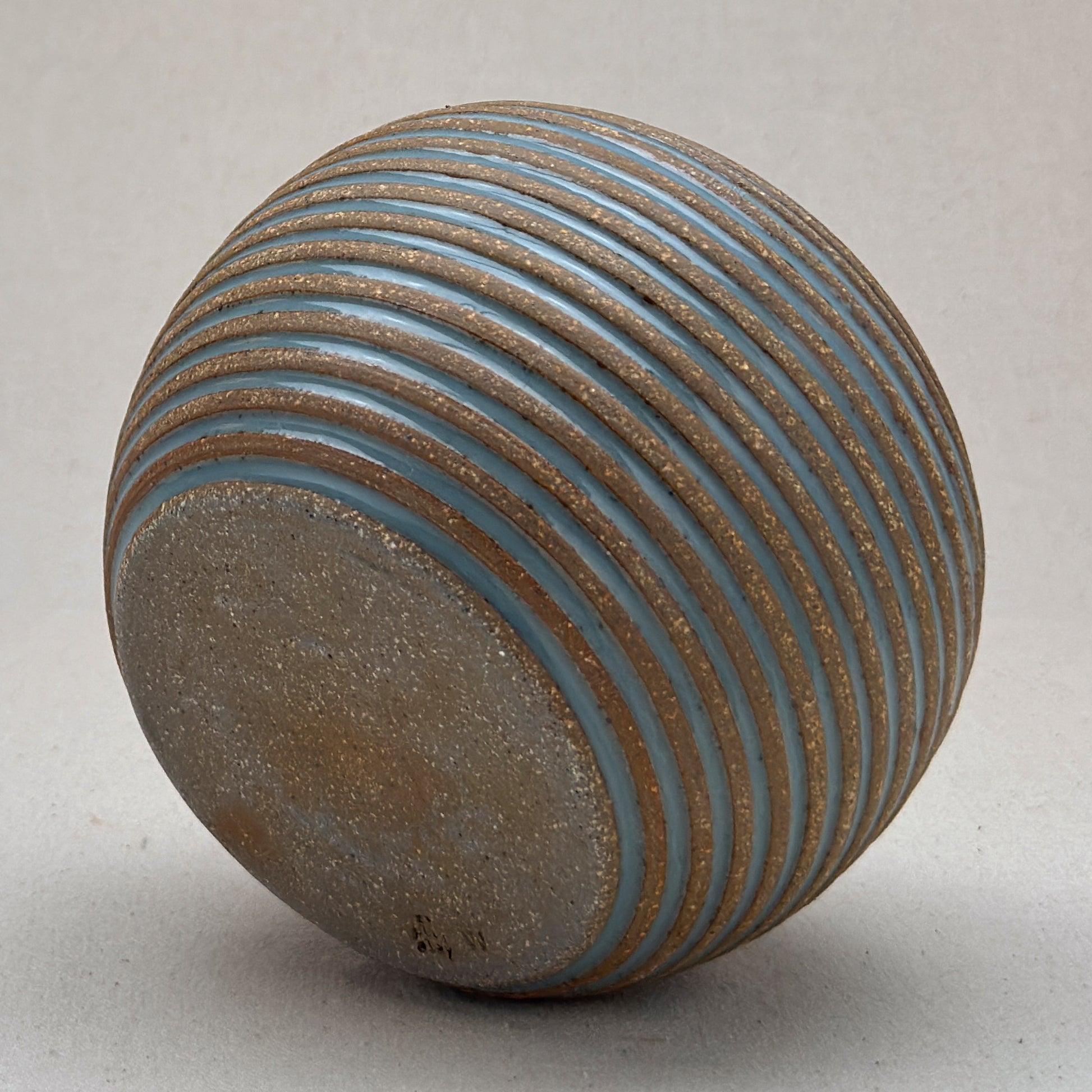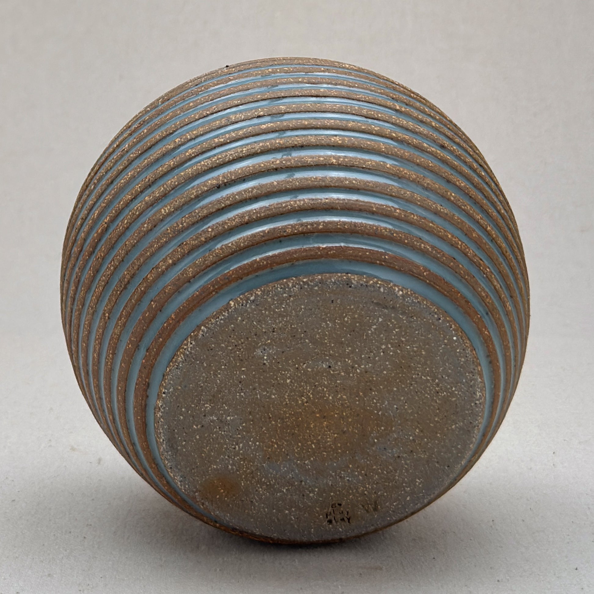 This vase is part of a small batch series. The letter “s” stamped on the base means that it was the nineteenth one of its shape. Sometimes, I make it through the alphabet in a batch, but I usually move on to a new kind of pot and restart the alphabet.