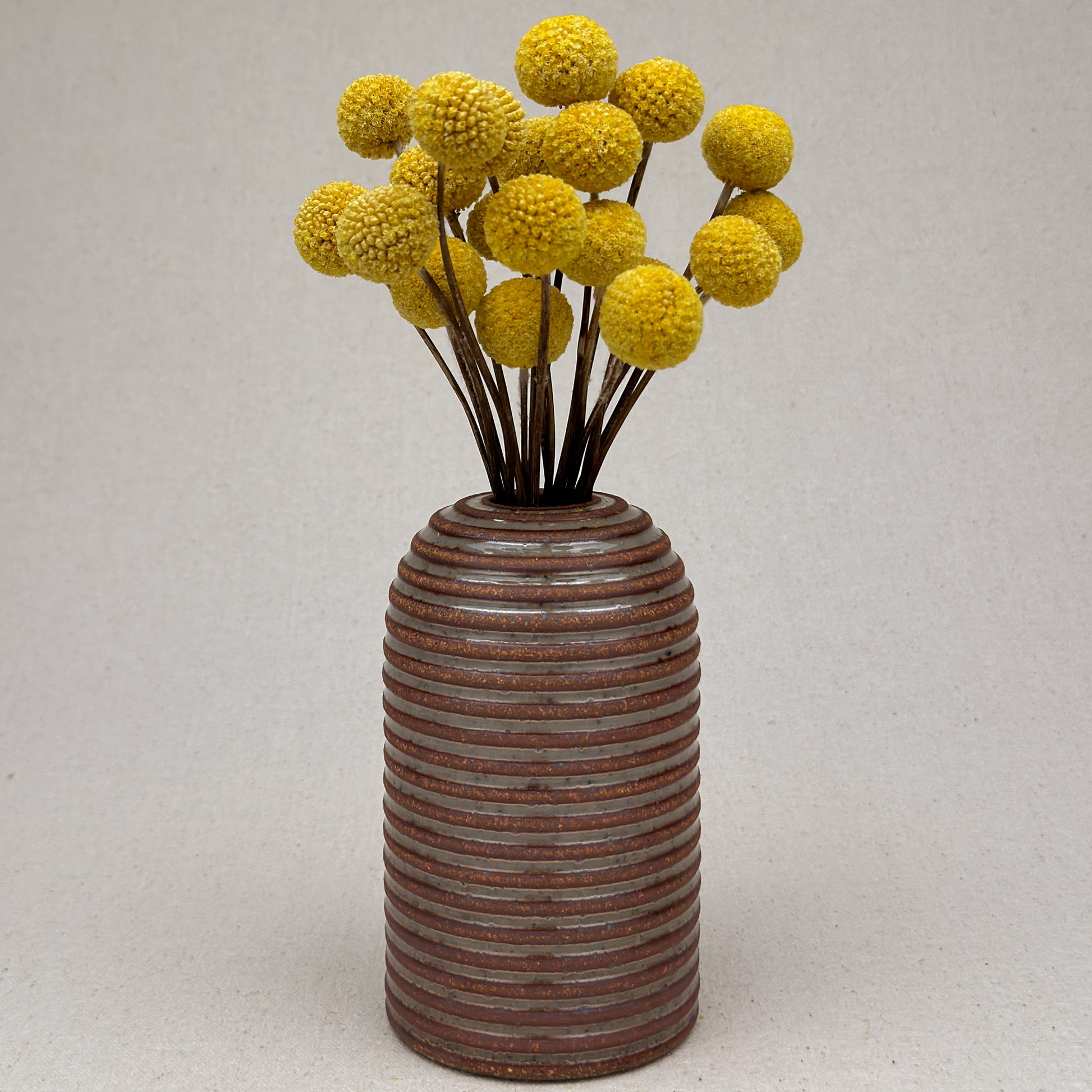 Inside, the vase is fully glazed and will hold water for flowers. It is great for a bedside table, desk, or an entryway table. I love this vase for billy balls, bunny tails, or silver dollar eucalyptus greenery.