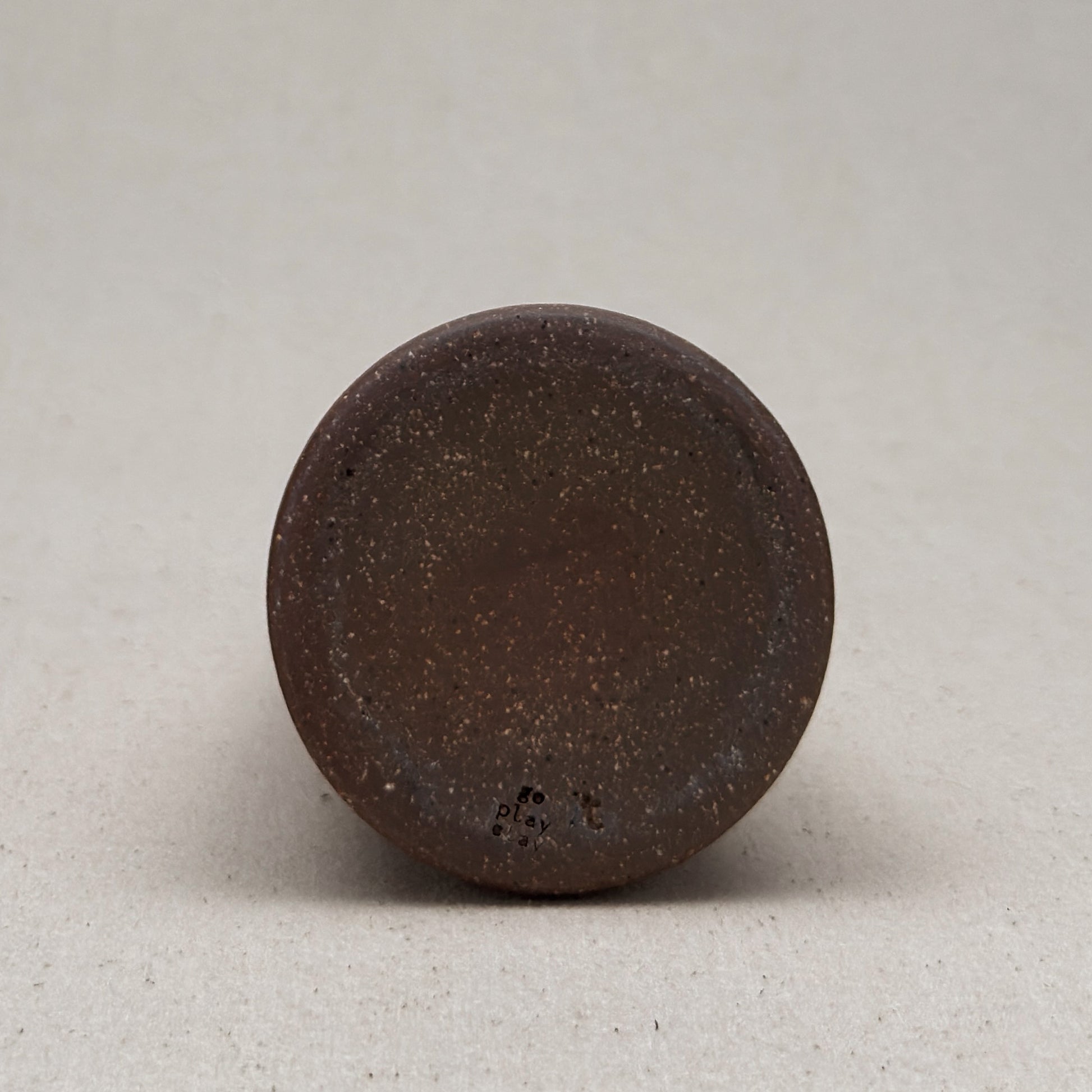 This vase is part of a small batch series. The letter “t” stamped on the base means that it was the twentieth one of its shape. Sometimes, I make it through the alphabet in a batch, but I usually move on to a new kind of pot and restart the alphabet.