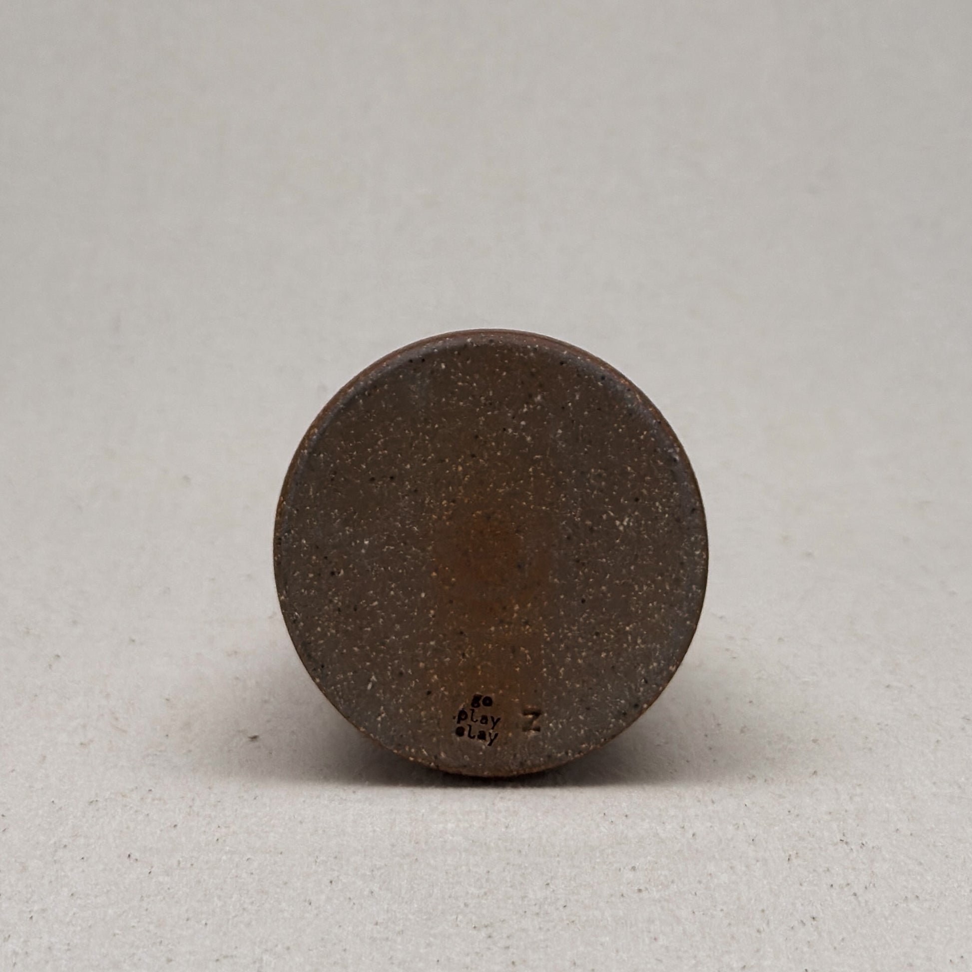 This vase is part of a small batch series. The letter “z” stamped on the base means that it was the twenty-sixth one of its shape. Sometimes, I make it through the alphabet in a batch, but I usually move on to a new kind of pot and restart the alphabet.