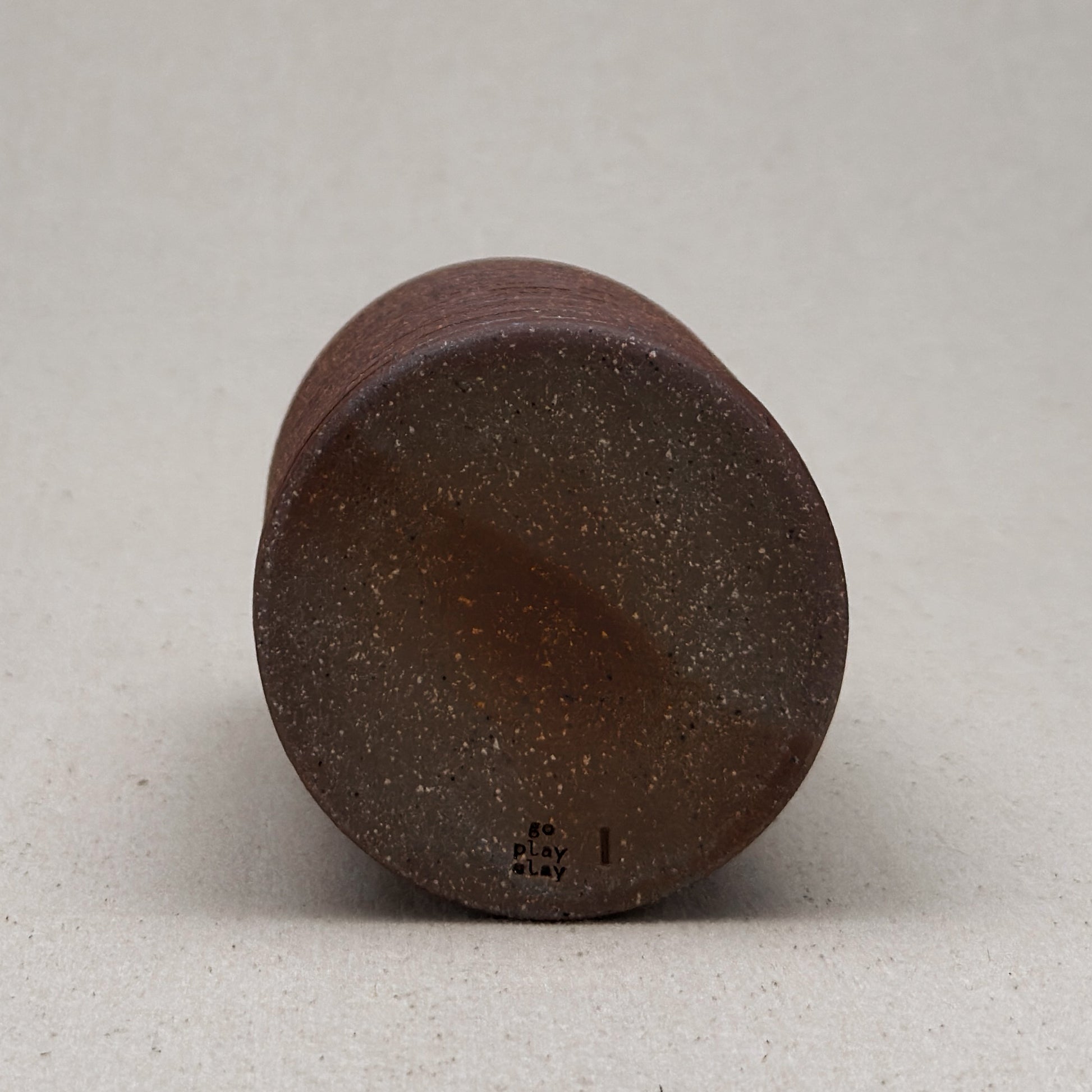 This vase is part of a small batch series. The letter “l” stamped on the base means that it was the twelfth one of its shape. Sometimes, I make it through the alphabet in a batch, but I usually move on to a new kind of pot and restart the alphabet.